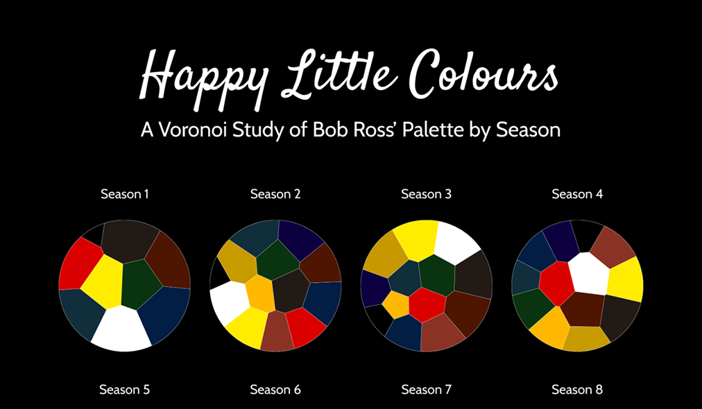 A season-by-season visual exploration of Bob Ross' iconic painting palette, transforming his most-used